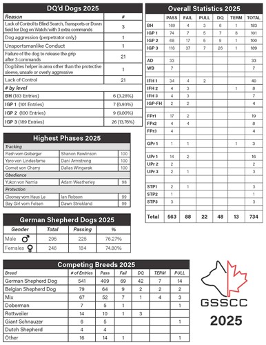 » Read lessThe 2025 GSSCC Championship and Sieger Show was held August 7th to 10th in Saskatoon. Thank you to Central Plains Schutzhund club for hosting a top class event.