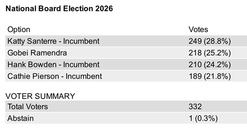 A special thank you to outgoing Director Cathie Pierson for all her work on the national board of directors, most notably her commitment to the successful rollout of the C-Stamp Program.